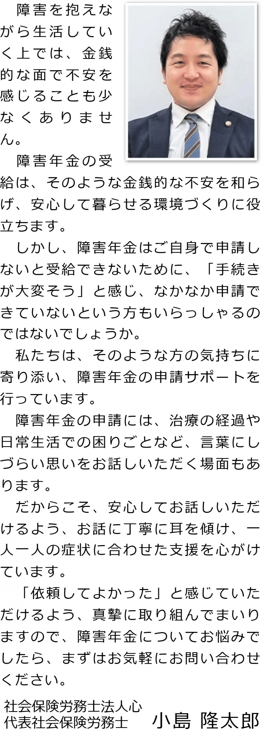 当事務所では、障害をお持ちでお困りの方が安心して生活することができるよう、障害年金申請を全力でサポートいたします。